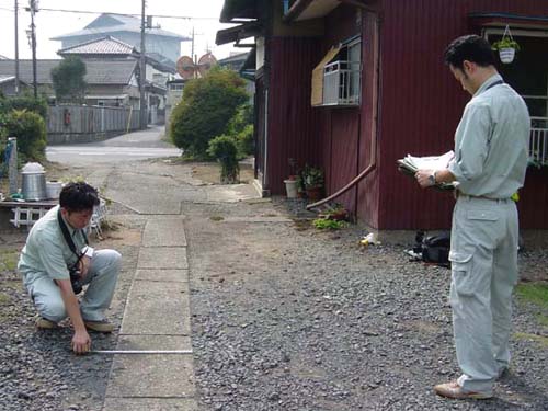 | 建物周りの状況・工作物・立竹木・屋外動産の調査。 小さなものから大きなものまで権利者にとっては全てが大切な財産 であります。傷などつけぬよう現地では細心の注意と配慮のもとに 調査し、公共事業のパイプラインを勤めます。 |